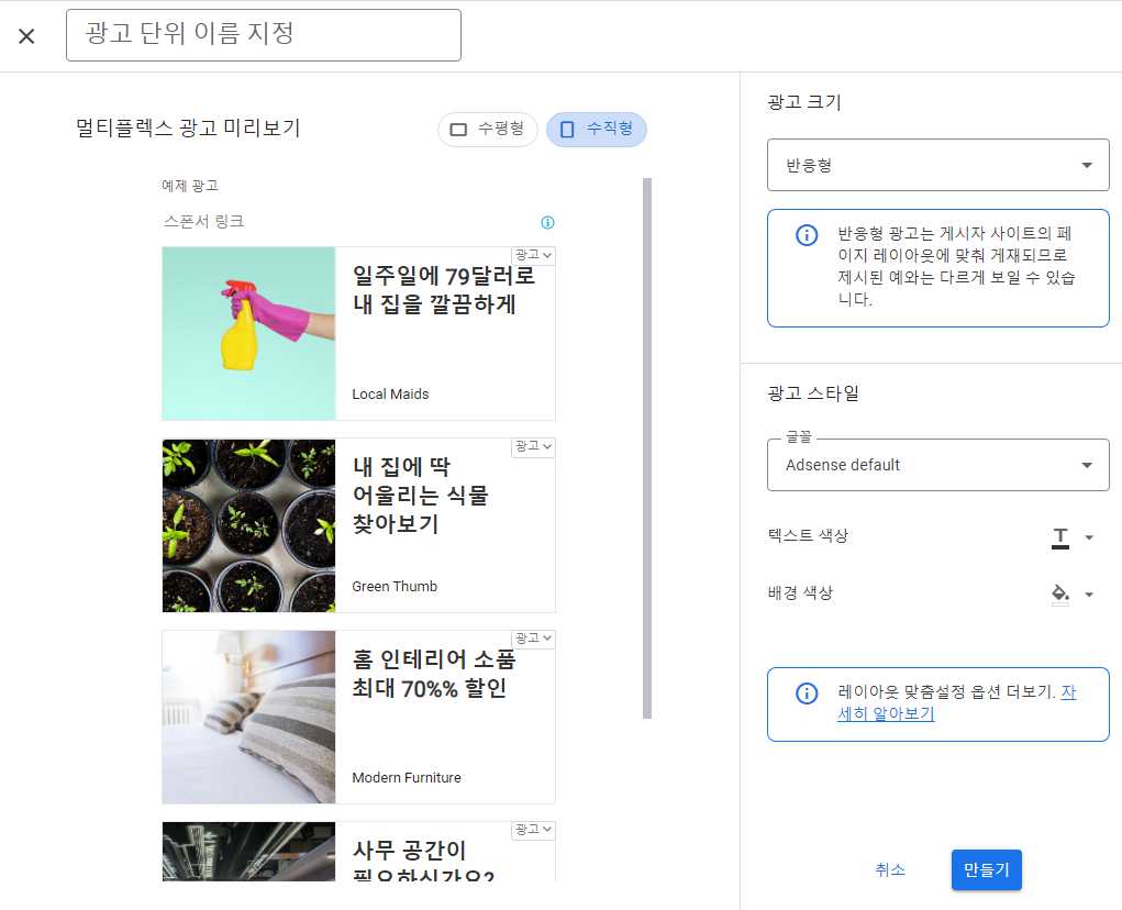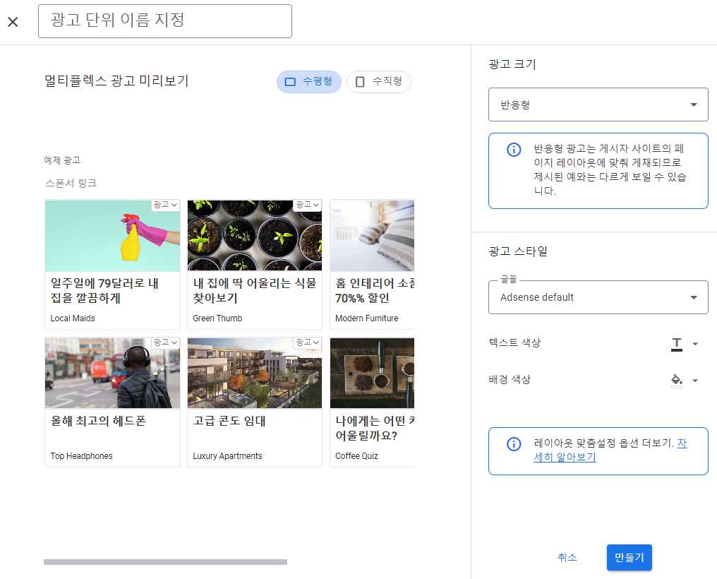 애드센스 멀티플렉스 광고 만들기